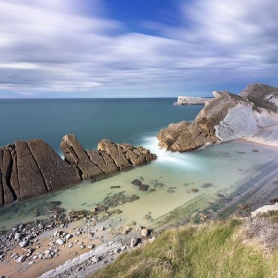 Las playas de Portio, La Arnía, Somocuevas y Covachos, con sus escarpados acantilados enclavados en la denominada Costa Quebrada, Lugar ideal para disfrutar de uno de los atardeceres más bonitos de Cantabria viendo como el sol se oculta en el mar